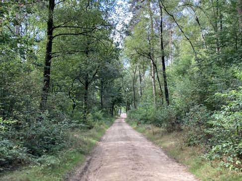 Nachdem ich den Ausblick ein bisschen genossen habe und nun wieder auf dem Boden angekommen bin, wandere ich weiter und befinde mich nun auf dem südlichen, kürzeren Streckenabschnitt der Route. Hier gibt es schöne Sandwege und nach einiger Zeit erreiche ich die Grenzerlebnisstation, die den Grenzübertritt in die Niederlande markiert und etwas spannender gestaltet. Ich komme am Hoeve Springendal vorbei, einem gemütlichen Hof, der zu einer Kaffeepause einlädt. Kurz darauf erreiche ich dann die Hügelgräberheide Halle-Hesingen, die in einem leuchtenden lila blüht. Ich nehme für einen Moment auf einer der Bänke Platz, genieße den schönen Ausblick auf die Heide und beobachte die Schafsherde, die hier zuhause ist. Die Wanderwege führen mich noch ein ganzes Stück durch die traumhafte Heidelandschaft. Kurz nachdem ich diese verlasse, erreiche ich auch schon wieder den Aussichtsturm am Lönsberg.
